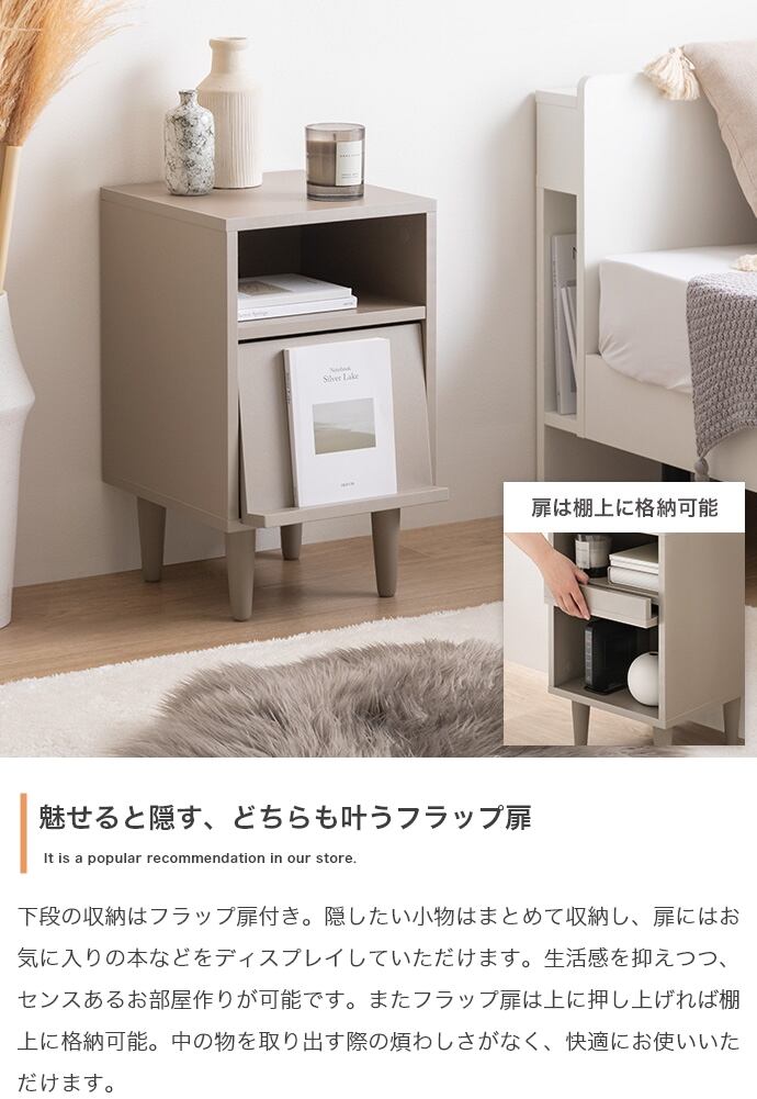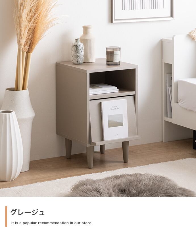 生活感を隠して、ディスプレイで魅せる『Carina(カリーナ)』シリーズのフラップ扉付サイドキャビネット。フラップ扉で生活感のあるものをすっきりと隠し、扉の引き手部分にはお気に入りの雑誌や本をディスプレイできます。統一感のあるワントーンデザインが空間に自然に溶け込み、洗練された印象に。装飾のないノイズレスなデザインが、トレンド感溢れるホテルライクなインテリアを実現します。