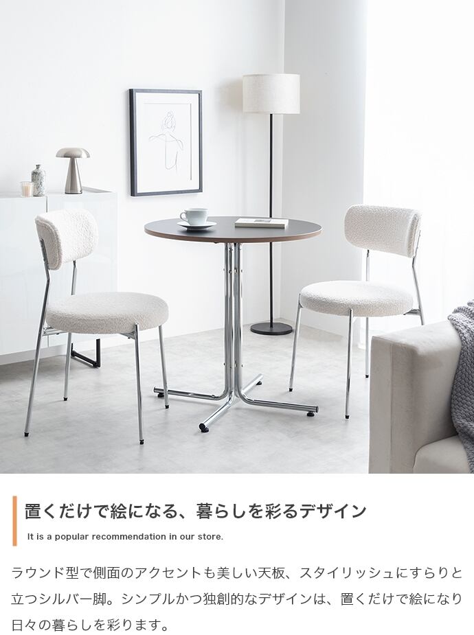 洗練されたデザインの『Stjerne(スチャーナ)』ダイニング3点セット。独創的な脚のシルエットが美しい丸型カフェテーブルと、ブークレ生地がアクセントのチェア2脚は、置くだけでお部屋をホテルライクな空間に演出。実用性が高い天板サイズや座り心地の良さにもこだわりました。特別感のある空間でゆったり心地よい毎日をお楽しみください。