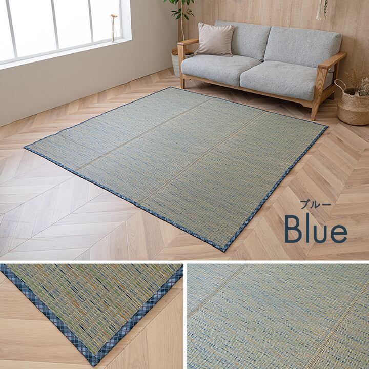 涼しげなカラーリングがお部屋を明るくしてくれるい草ラグ。