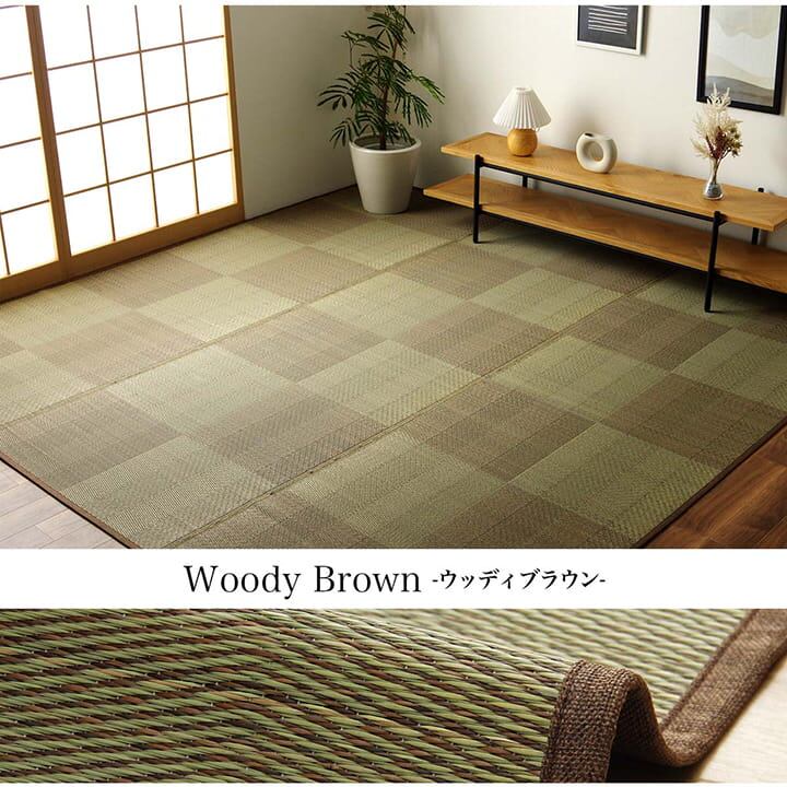 い草カーペットは和室の畳をカバーし、汚れや傷を防止してくれます。通常のカーペットと違い毛足が無いのでゴミや髪の毛などがからみにくく、掃除機やコロコロ(粘着シート)での掃除がラクにできます。い草には優れた消臭機能があり、汗臭やペット臭などの原因となる物質を消臭してくれます。い草には喘息の原因の一つとも言われる二酸化窒素や、シックハウス症候群の原因の一つのホルムアルデヒドを吸着してくれます。天然物質としては抗菌力の高い青森ヒバから抽出したヒノキチオールをい草生地に使用しており、抗菌防臭効果があります。い草の癒される香りとサラッとした肌触りはそのままに、和室や洋室にも合わせられるインテリア性の高いナチュラルシンプルなデザインで仕上げています。