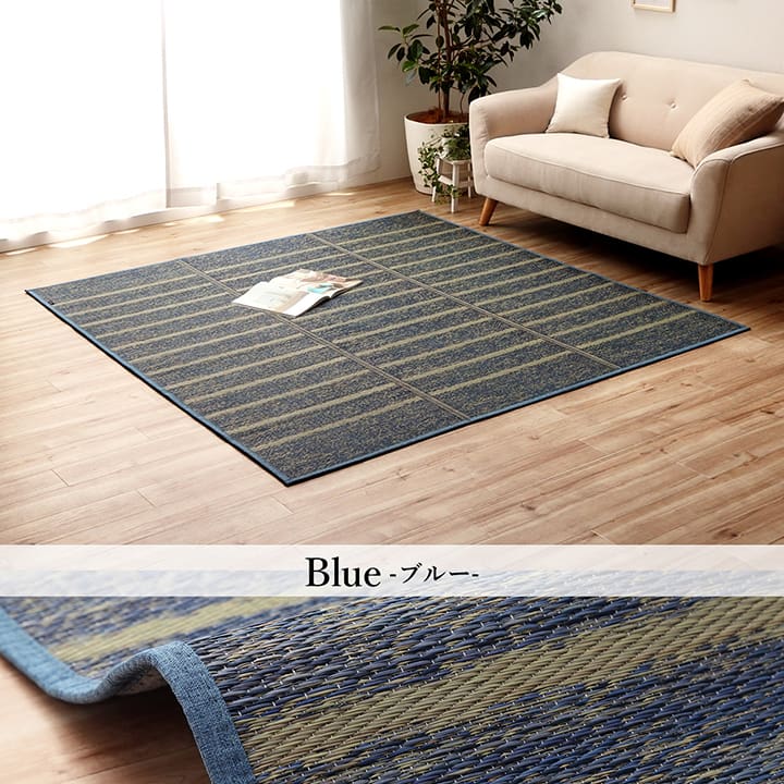 どのようなテイストのお部屋にも合わせやすい、シンプルなデザインのい草ラグです。
