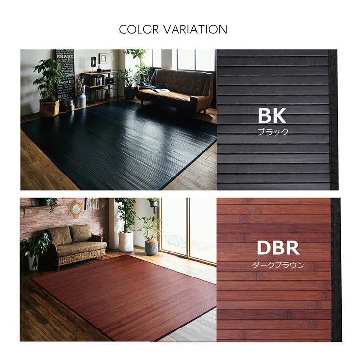 竹は耐久性に優れ、熱伝導率が高いため自然のひんやり感があります。表面の肌触りを滑らかにするため、また竹の色を揃えるためにPU塗装を施しています。シンプルな糸無しの張り付けタイプです。また無垢材を使用し、あたたかみのある質感に仕上げました。素材は17mm幅の竹ヒゴを使用しています。17mm幅の竹ヒゴは大きく育った竹からしか取れない素材です。竹は他の木材と比べると格段に成長が早く(3〜5年で成竹)、持続的生産が可能な環境に優しいサスティナブルな素材です。