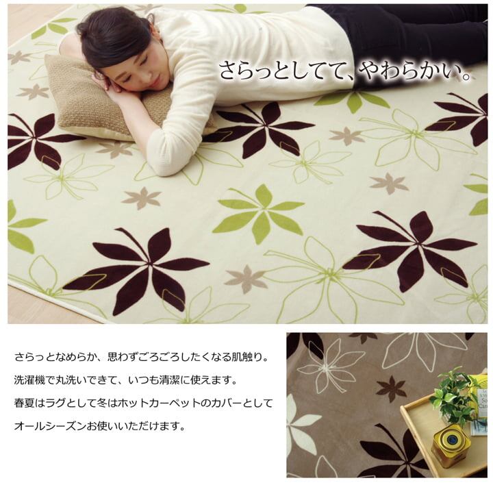 生地に抗菌・防臭加工を施した、ラグカーペットです。表地にはフランネルと呼ばれる、しっとりとして非常に柔らかい生地を使用しています。軽量で持ち運びが楽々です。薄手で小さく折りたたむことができますので、収納時にも場所を取りません。フローリングを傷つけにくいよう、裏には不織布を貼っています。ご家庭の洗濯機で洗えるウォッシャブル仕様ですので、清潔にご使用頂けます。電気カーペットカバーとしてもご使用頂けます。季節を選ばすオールシーズンご使用頂けます。多サイズ展開で、ワンルームから子ども部屋、リビング・ダイニング、ベッドサイド、ソファ前にも。いろいろなシーンに合わせてお選び下さい。