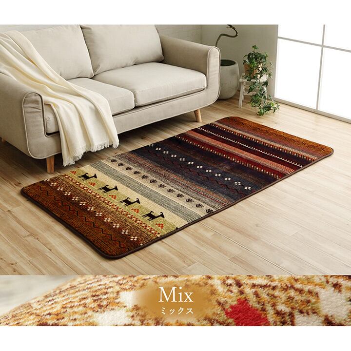 人気のギャベデザインを取り入れた,おしゃれなラグです。表地は,なめらかでしっとりとした肌触りのフランネル生地です。中材に厚み15mmのウレタンを使用しているため,防音性も高まり,生活音や足音など,階下への騒音対策にもおすすめです。床暖房・ホットカーペットにも対応しています。こたつ敷布団としてもおすすめです。オールシーズンお使いいただけます。
