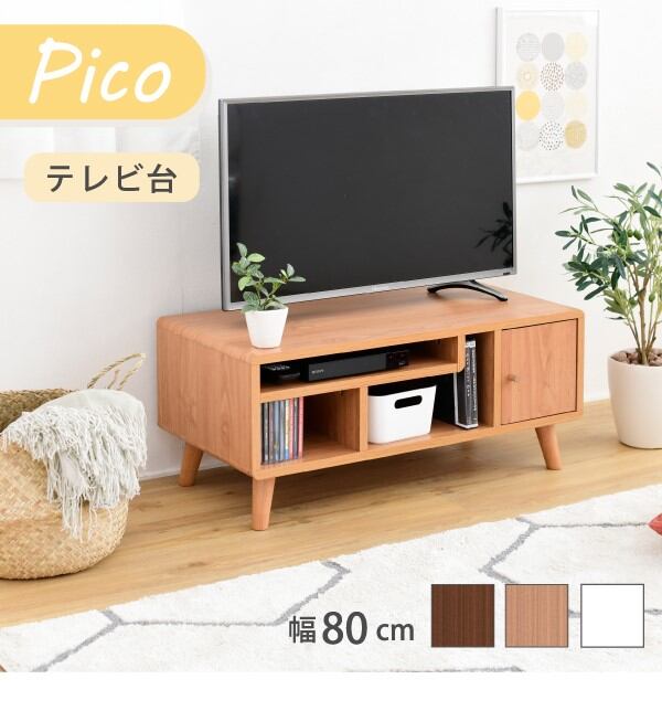 pico テレビ台 コンパクト 幅80 奥行41 高さ35.5 Pico かわいい 脚付き 北欧風 レコーダー収納 32型 対応 ナチュラル ホワイト ブラウン ひとり暮らし dvd収納 | SnowPine