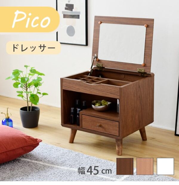 pico ドレッサー ロータイプ 幅45 奥行41 高さ46 Pico コンパクトドレッサー おしゃれ 小さめ ミニドレッサー 可愛い かわいい 木製 一人暮らし 省スペース 脚付き | SnowPine