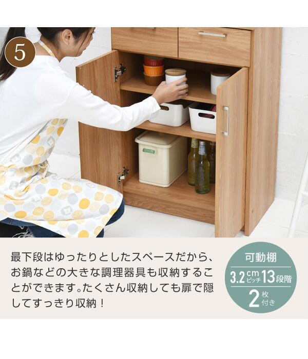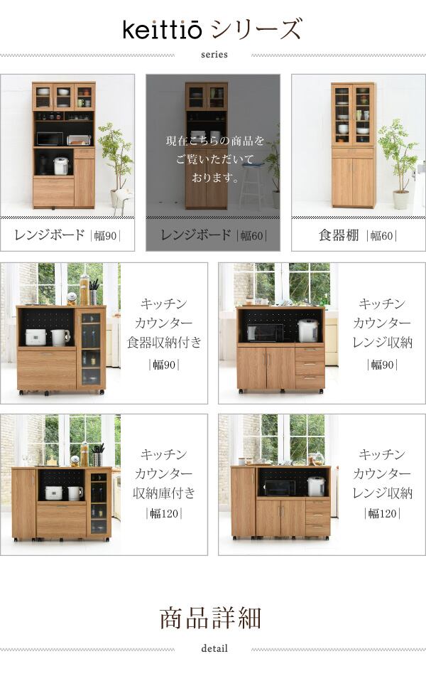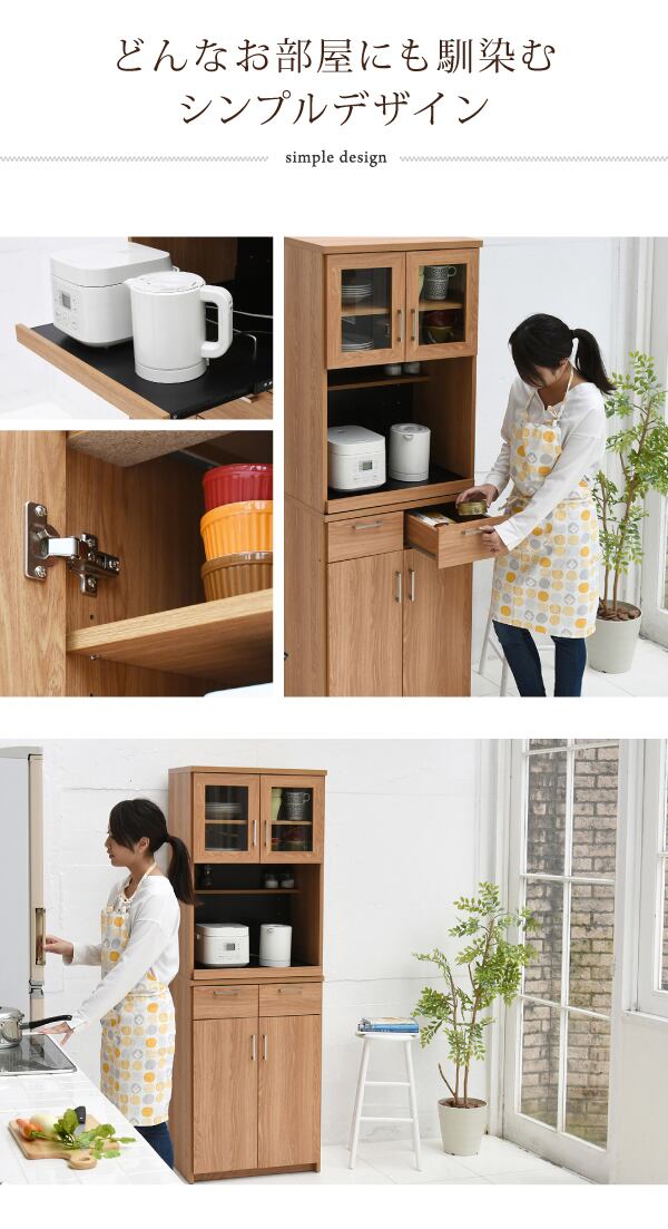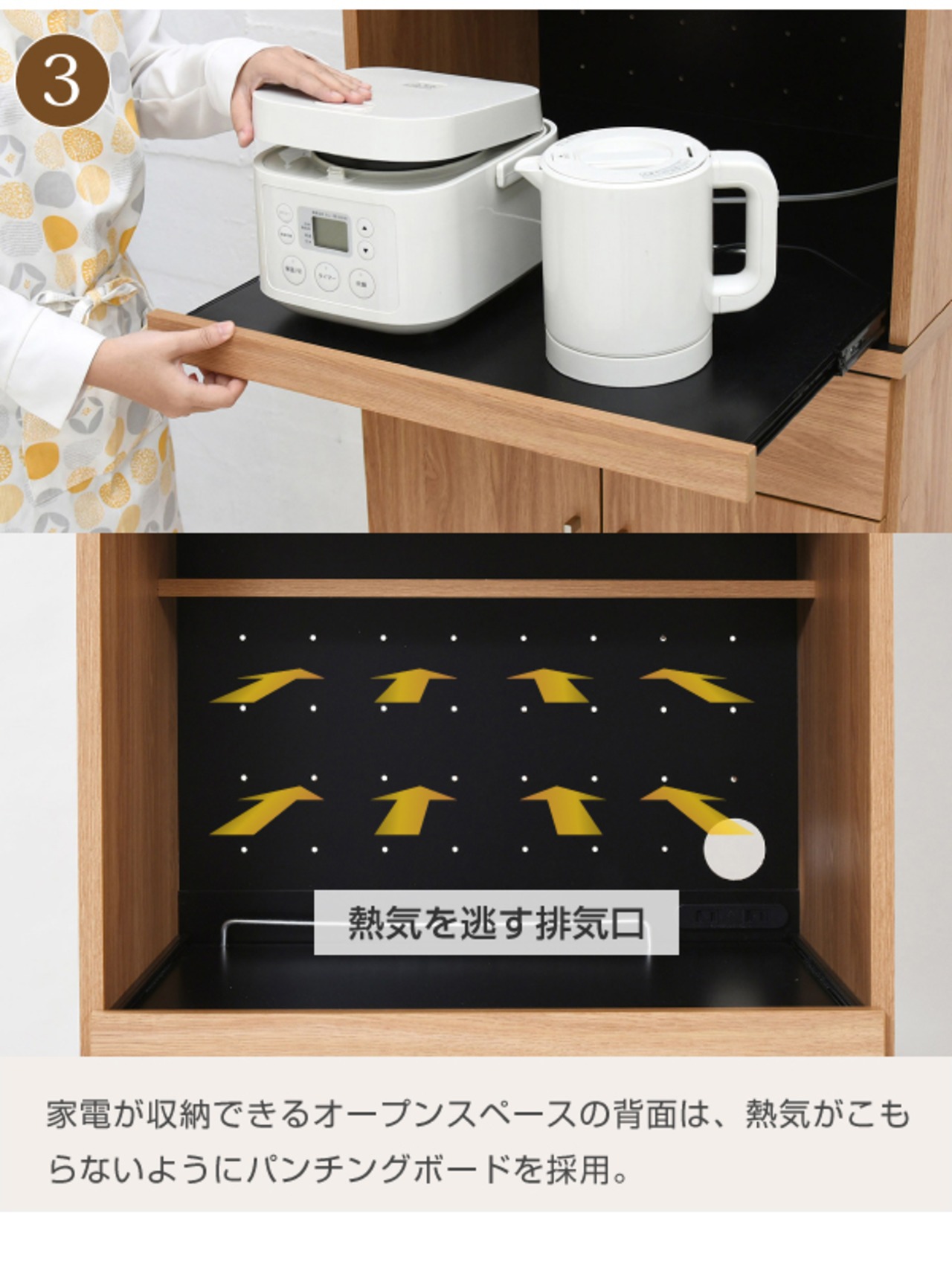 食器も家電も置ける!スリムでおしゃれな高さ180のレンジボード。家電を収納できるスペースをプラスした多彩な収納機能で、キッチン周りがすっきり片付くキッチンボード。