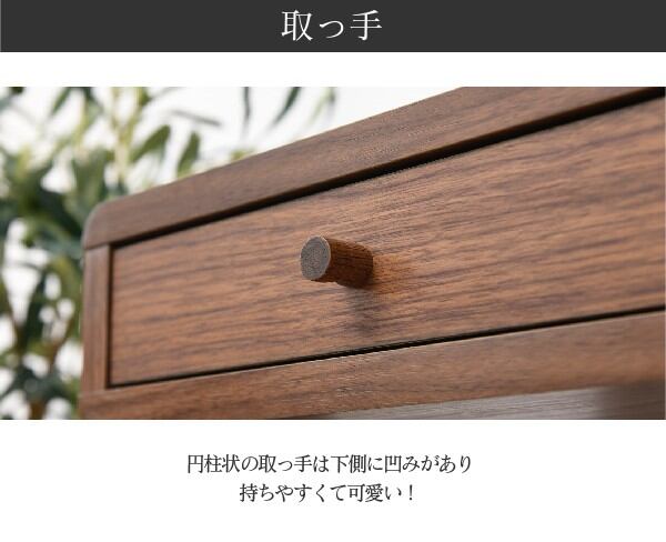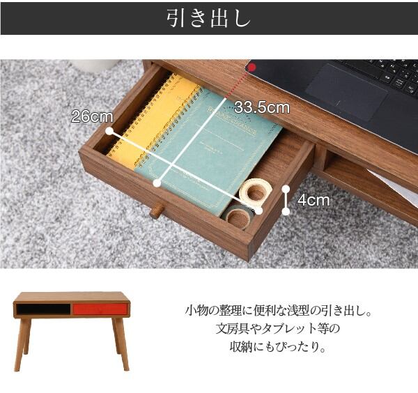 収納するものから設計されたデザインだから、コンパクトでも機能的。省スペースなデスクはちょっとした作業にぴったり。オープンスペースと引き出し、2種類の収納部は左右の位置をお好みで選んでいただけます。丸みのある北欧風のデザインはとてもおしゃれで、コンパクトなのでひとり暮らしのお部屋にもぴったりです。