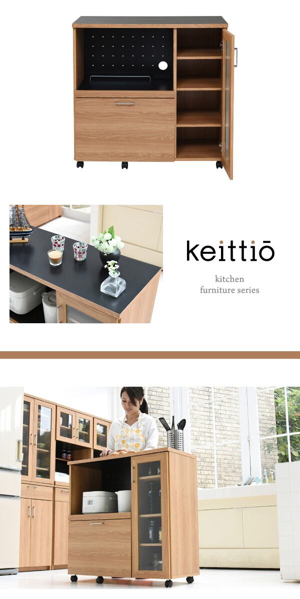 収納抜群のコンパクトカウンター。見た目以上に入るから、食器や家電、食品などの収納がこれ一台に収納可能なキッチンカウンター。