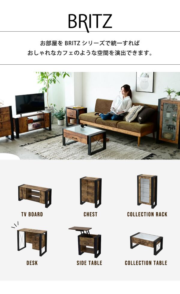 おしゃれなカフェの雰囲気を演出できる、ヴィンテージ風シートがクールなブルックリンスタイルのデスク。無骨すぎないデザインで男女問わずご使用いただけます。便利な大小2杯の引き出し付き。下段はA4ファイルも収納できる深型設計でデスク回りがすっきりと片付きます。