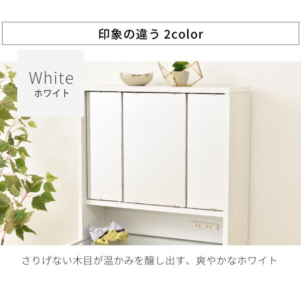 毎日のお出かけ準備がもっと楽になる、デスクに取り付けられる三面鏡。ミラー扉内にはたっぷりの収納スペースがあり、毎日使うメイクグッズや小物を入れるのにぴったり。