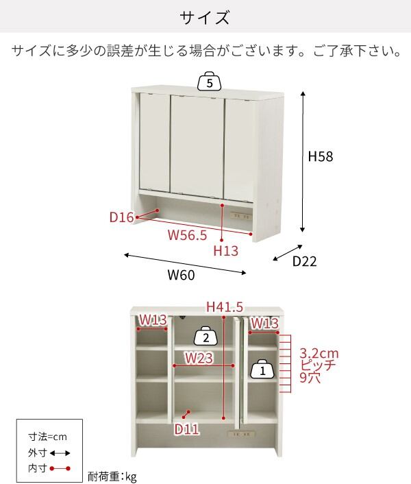 (ミラー下)幅56.5×奥行16×高さ13cm
