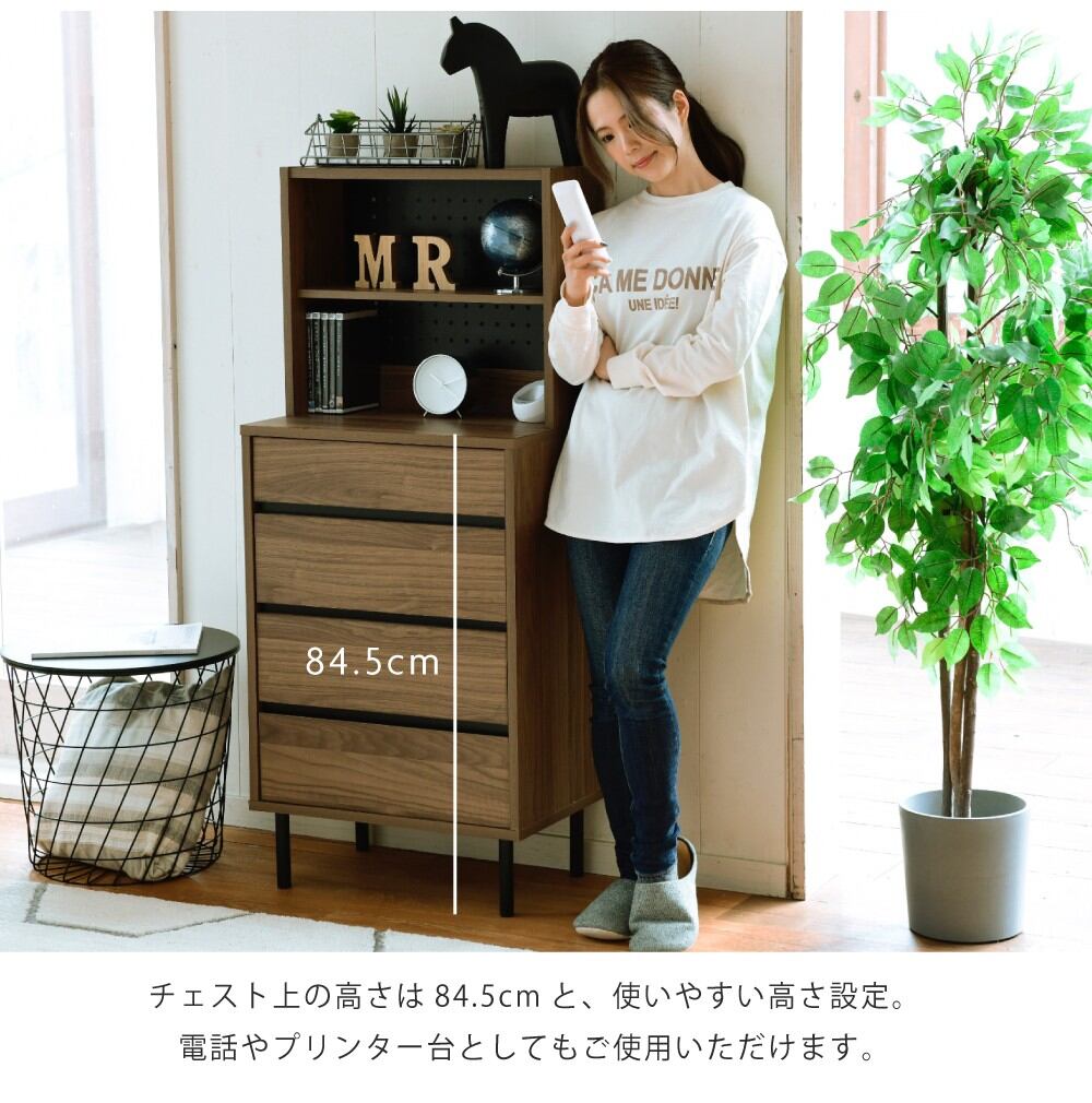 Fresser サイドボード スリム 飾り棚付きチェスト コンセント付きチェスト ラック付き 木製 4段 北欧 ブラック ブラウン 引き出し 脚付き 黒 幅55.5 奥行35.5 薄型 収納 | SnowPine