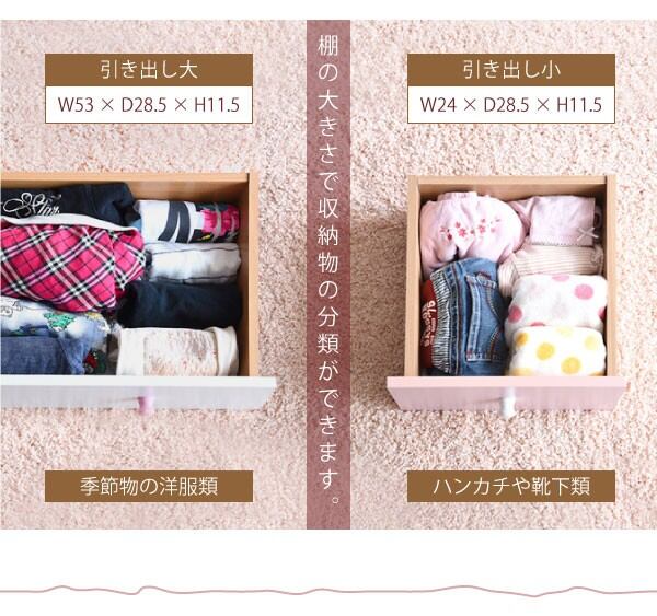 かわいいピンクとさわやかなナチュラル、シックなダークブラウンをご用意。お子様から大人まで幅広い世代にピッタリのシンプルなデザイン。引き出しには衣類から小物までたっぷり収納。