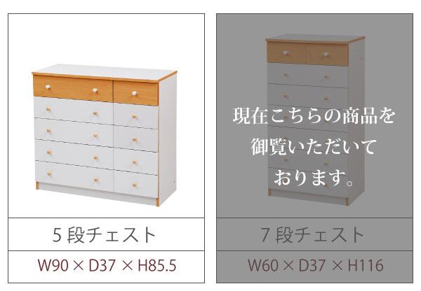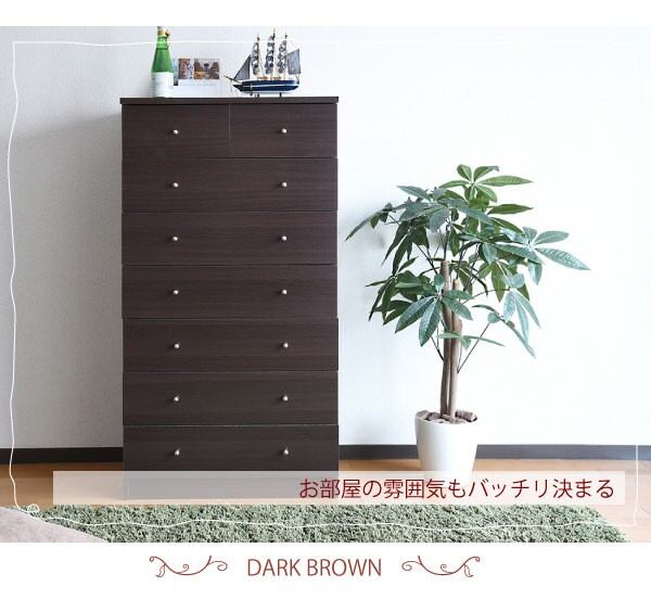 シンプルなデザインで圧迫感のない、カジュアルチェスト。小分けに便利な小さめの引出しと、たっぷり収納ができる大きめの引出し、全部で7段もあるチェスト