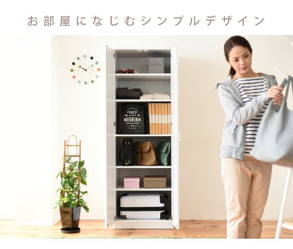 洋服タンスとしても、日用品の収納としても幅広く使える整理タンス。自由に高さが変えられる可動棚が4枚ついているので、収納物に合わせた収納ができます。