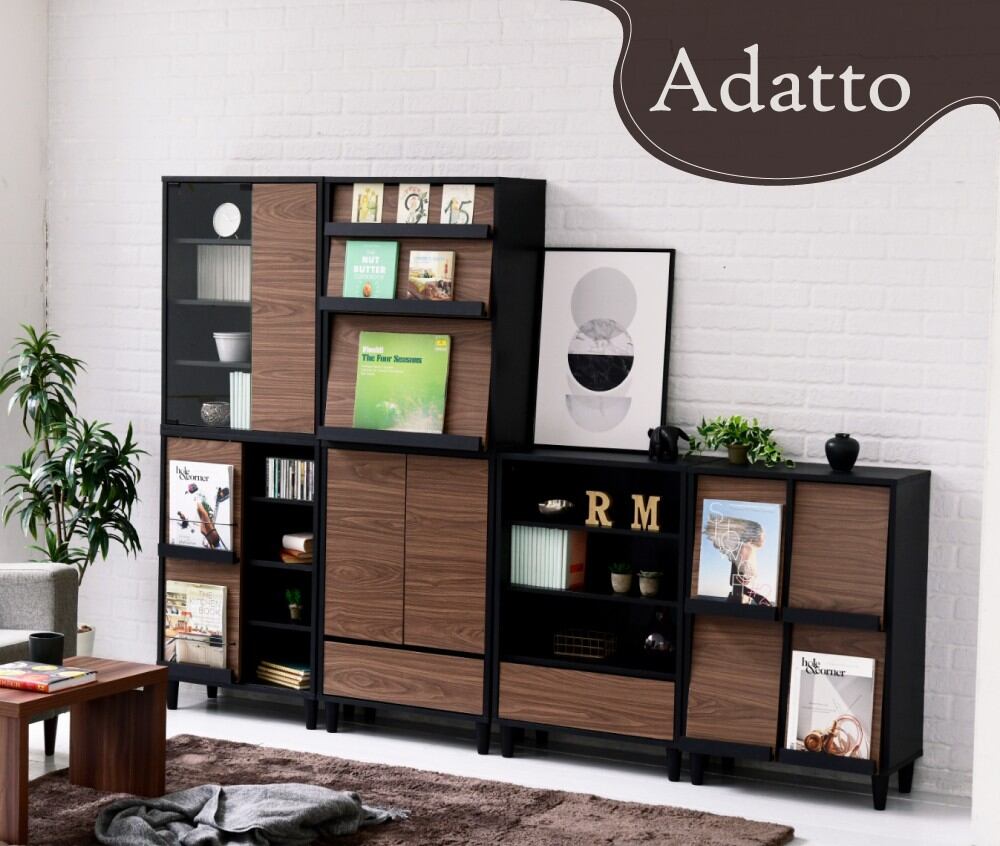 チェスト&キャビネット。6つのデザインと5つのカラーからお選びいただける6デザインキャビネット”Adatto”。美しい木目の扉と引き出しで壁面収納を演出。
