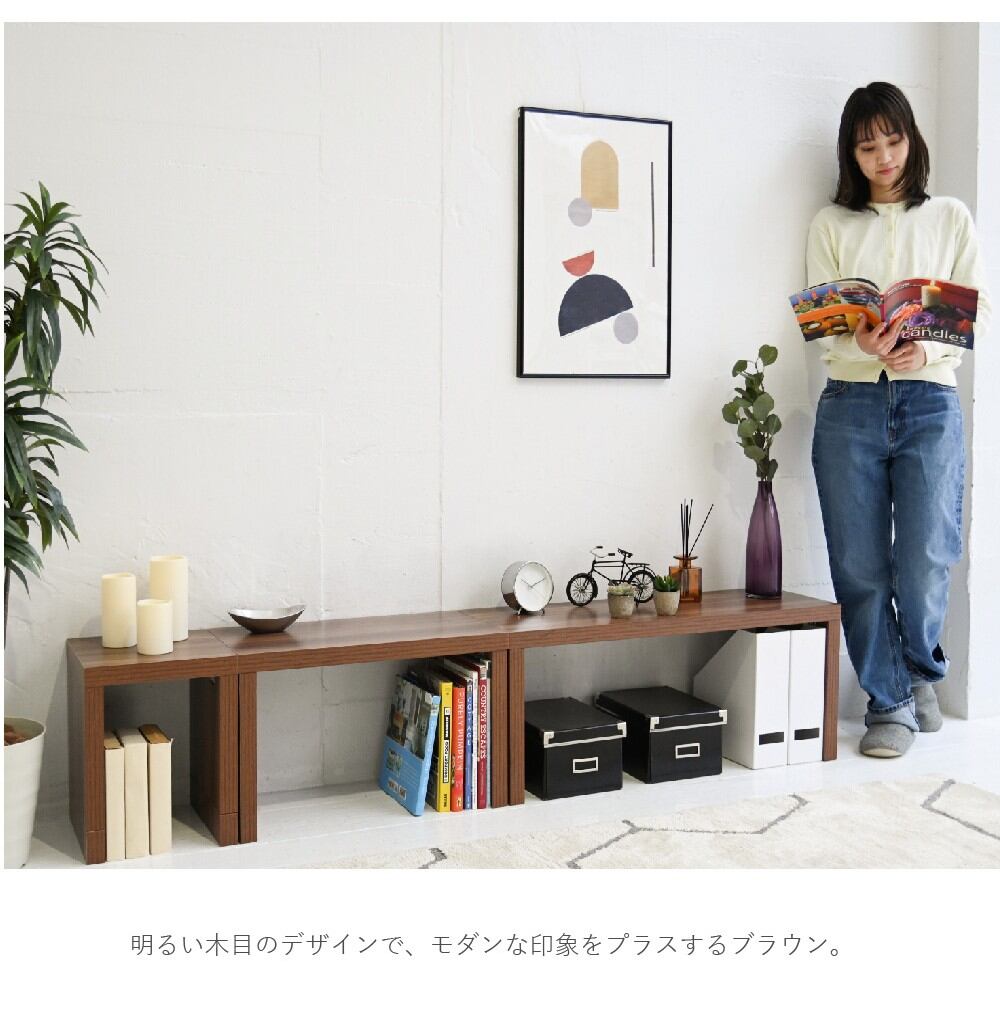 高さ調整の継ぎ脚を組み替えることで、ネストテーブルにも広々したリビングテーブルにも階段シェルフにもなる便利な優れもの”Scala”。使い方次第でお部屋の印象を変化させてくれるシェルフです。