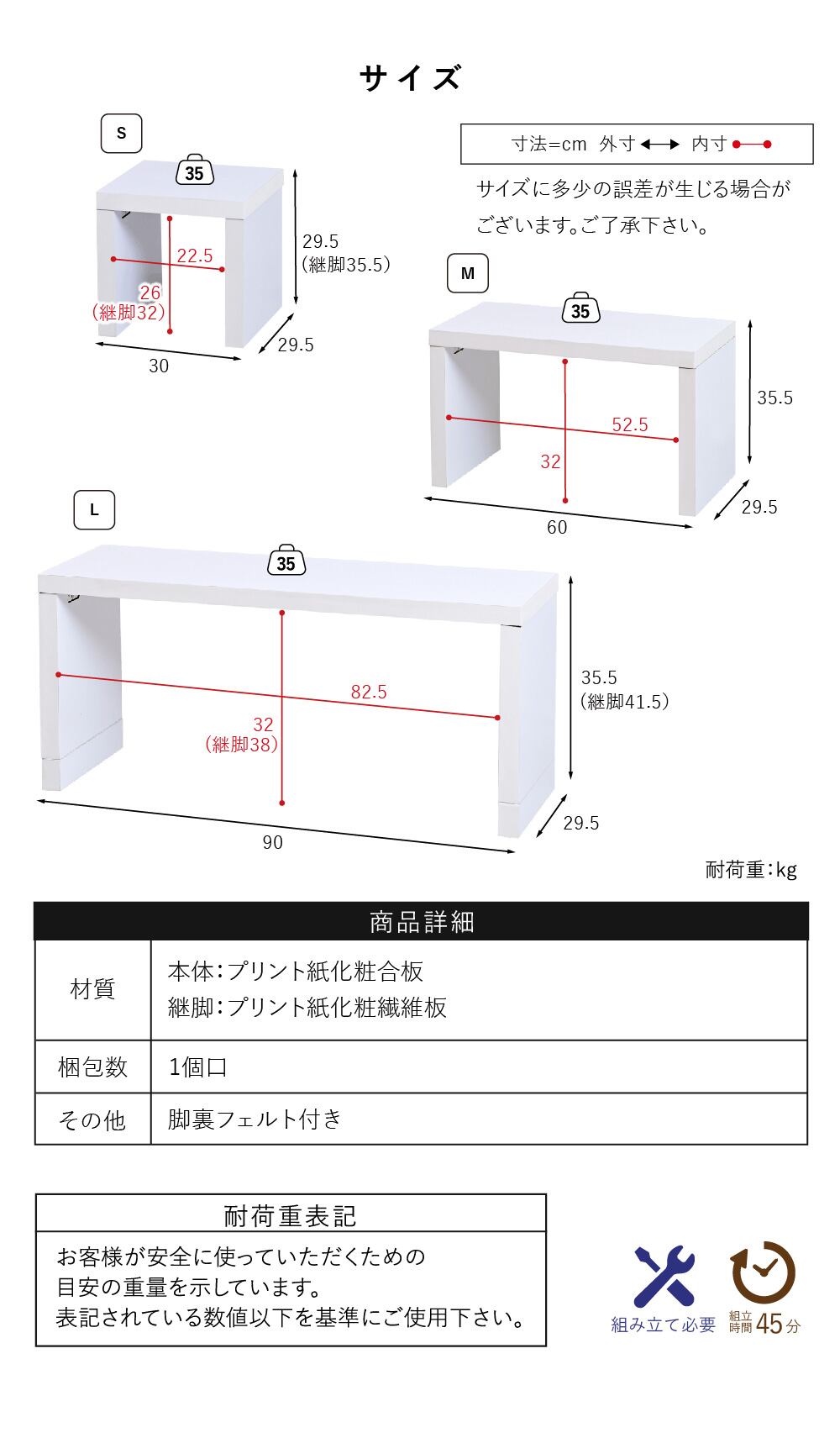 (L)幅90×奥行29.5×高さ35.5(継脚41.5)cm