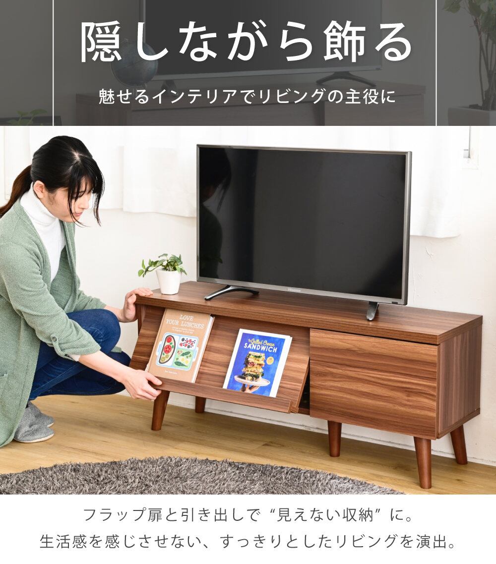 どんなお部屋にも馴染むシンプルなデザインのテレビ台。フラップ扉で収納物をおしゃれに隠せる優れもの。スマートな見た目でお部屋もスッキリ。脚付きだからお掃除も楽々。