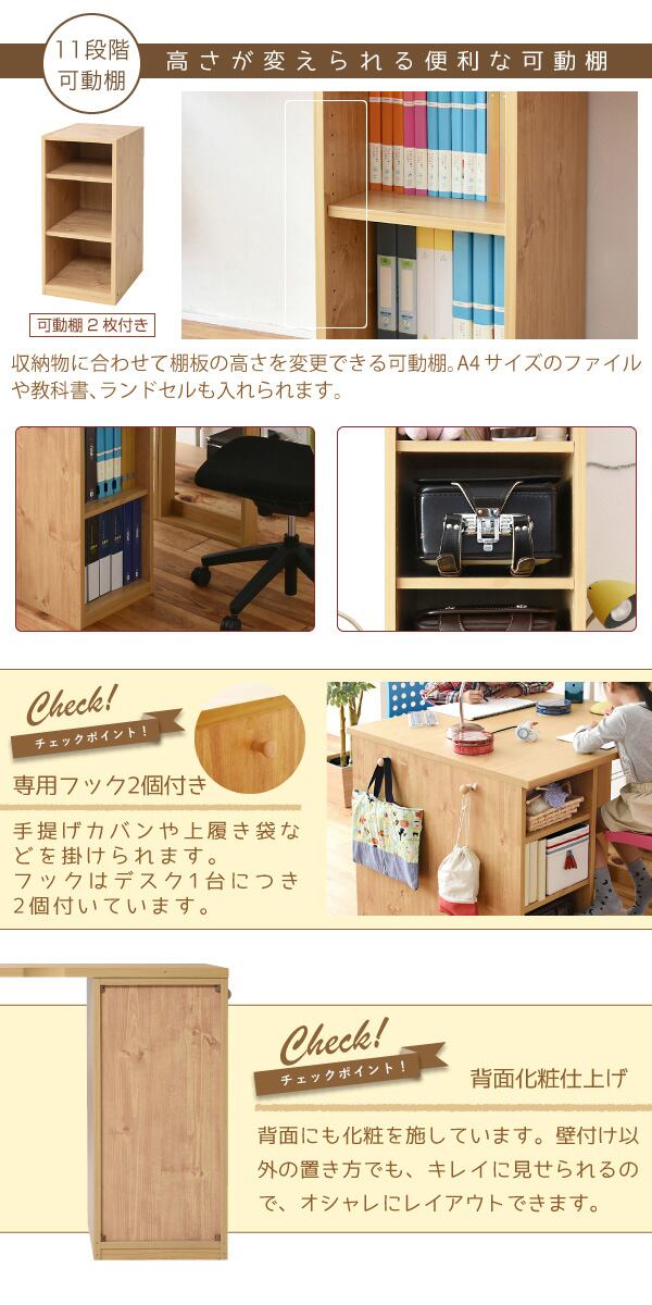 兄弟・親子で並んで使えるコンパクトでシンプルなツインデスク。ラックの位置が変えられ、お部屋に合わせて2つのデスクをくっつなけたり離したりと様々なコーディネートが楽しめます。