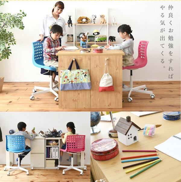 リビングでも、親子で並んで学習できるおしゃれなツインデスク。成長に合わせて並べたり離したりできる木製のリビングデスク。