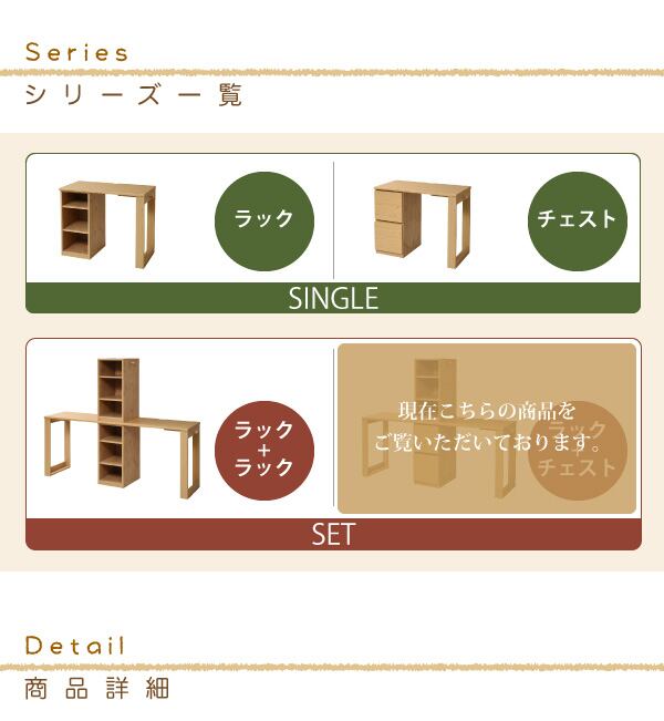 木目調が優しい印象を与えるホワイトとナチュラルの2カラー。ラックとチェストがついている省スペースなデスク。積み重ねても横に並べてもいいので自由に使えます。A4ファルや教科書が入る便利な設計。