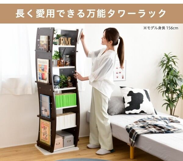 WAVY 回転 コミックラック WAVY スリム 省スペース 漫画 CD本棚 大容量 高さ 150 幅 60 7段 CD収納 ブックラック 収納棚 高さ調節 ホワイト ブラウン 赤 ナチュラル | SnowPine