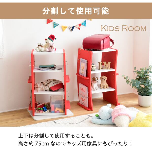 360度自由に回転するラックはどの方向からでも本や小物を取り出せるのが便利。天板も含めて全ての棚が可動式だから、収納物にあわせて細かく微調整が可能です。また、分割して横に並べることでロータイプのラックとして使用してもOK。お部屋の空間や好みに合わせて自由にレイアウトできます。自由な機能と、特徴的なウェービーな側板デザインが上手く融合し、機能性とデザイン性を高次元で両立しました。