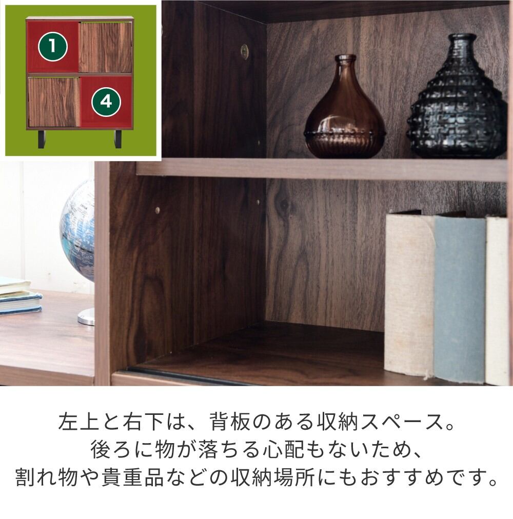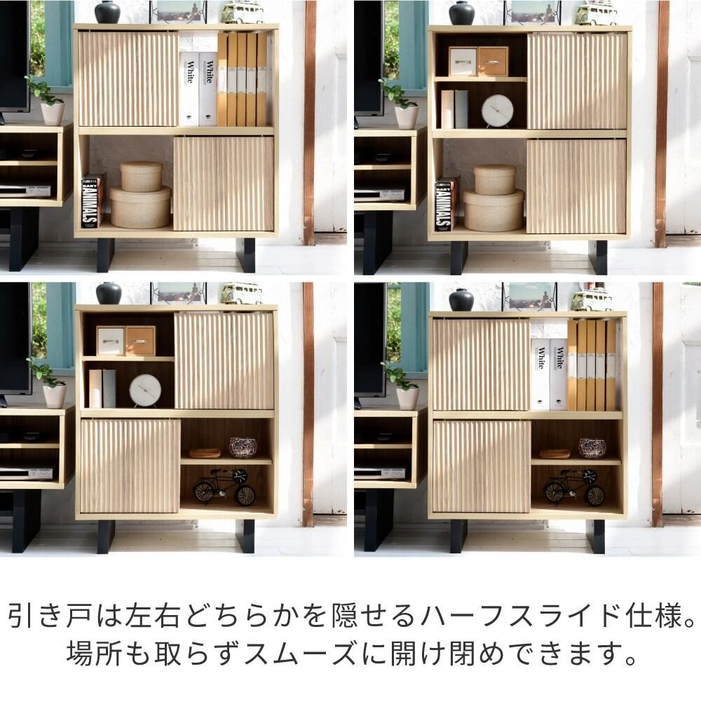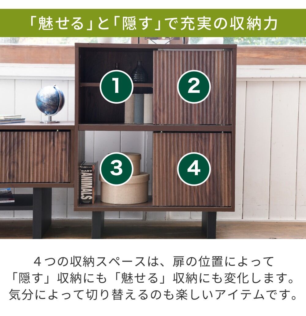 落ち着きのある和とモダンなテイストを組み合わせた和モダンシリーズ"Aalto"。引き戸の波型が印象的な、4か所の収納部が使えるシェルフです。