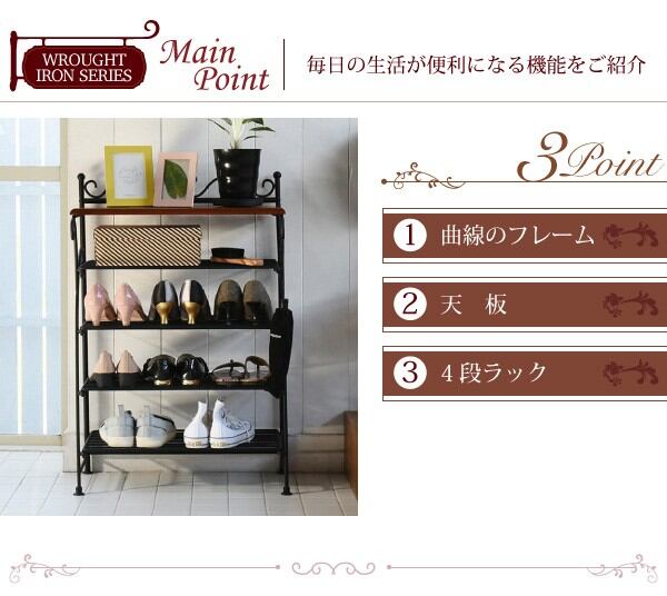 玄関の印象をガラっと変える、シューズラック。スチールと木が融合したおしゃれなロートアイアンシリーズ。