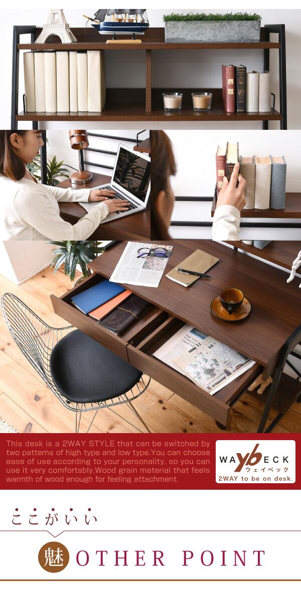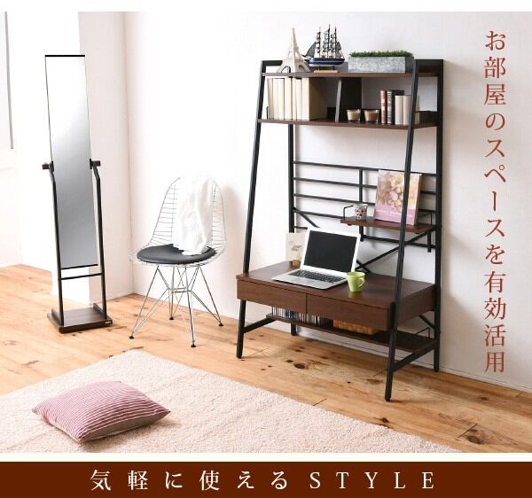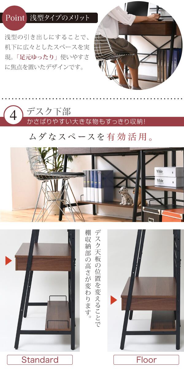 生活スタイルに合わせてハイタイプとロータイプに組み換え可能。好きな位置に取り付けられる収納棚付きでデスク周りの小物がすっきり片付きます。