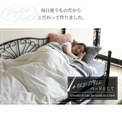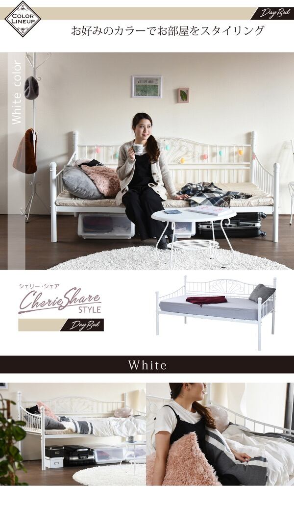 昼はソファ、夜はベッドと、2つのスタイルで使えるアンティーク調のデイベッド。ロートアイアンの装飾がエレガントな空間を演出し、アンティーク調の家具や小物との相性もバッチリ。