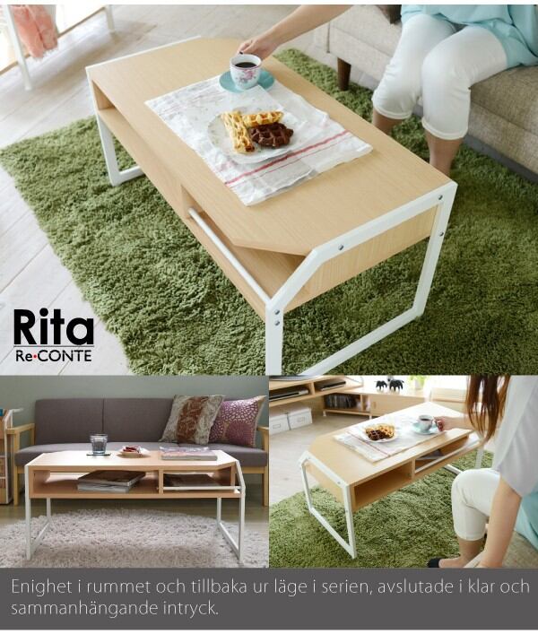Ritaシリーズは熱や水に強く、傷がつきにくいので、メンテナンスが容易です。スチールは鋭角な部分を排除し、やさしい作りになっています。天板下に収納部があるので、読みかけの雑誌や、リモコン類等テーブル周りの収納ができます。また、天板の角は斜めにカットされているので、リモコン等の簡易収納スペースとして活用できます。