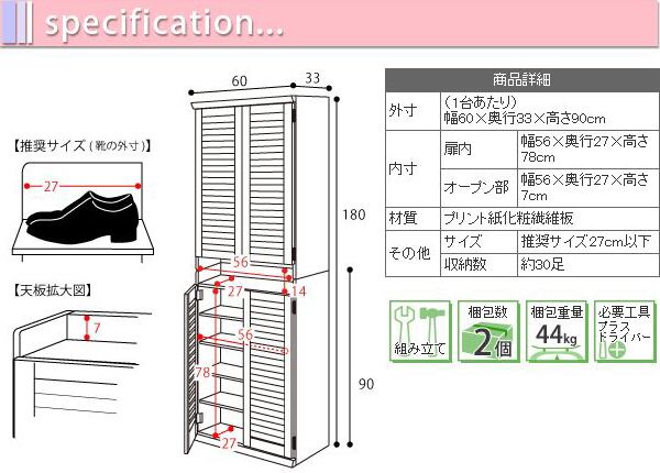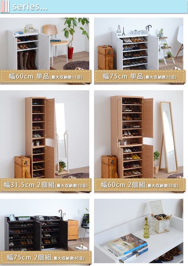 本格的ルーバー扉を採用!ルーバーシューズボックスシリーズ。2個セットで、横並びも縦積みもOK。60幅タイプの2個セット