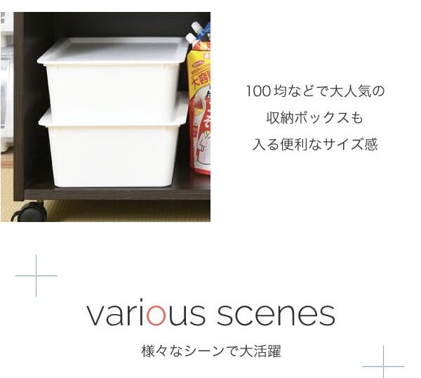 押入れにぴったり入る、キャスター付きラック2個組。押入れ内のスペースを有効活用できます。幅広なので大きな日用品のストックにも最適!