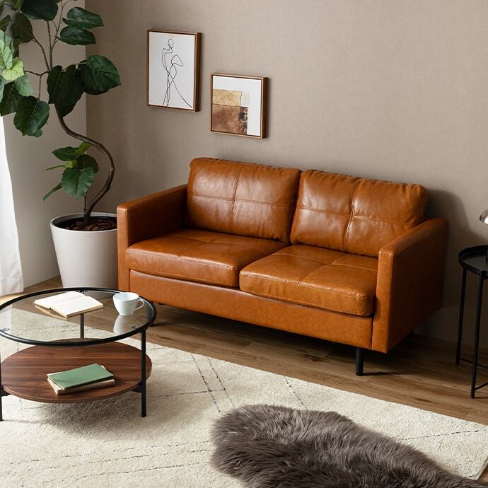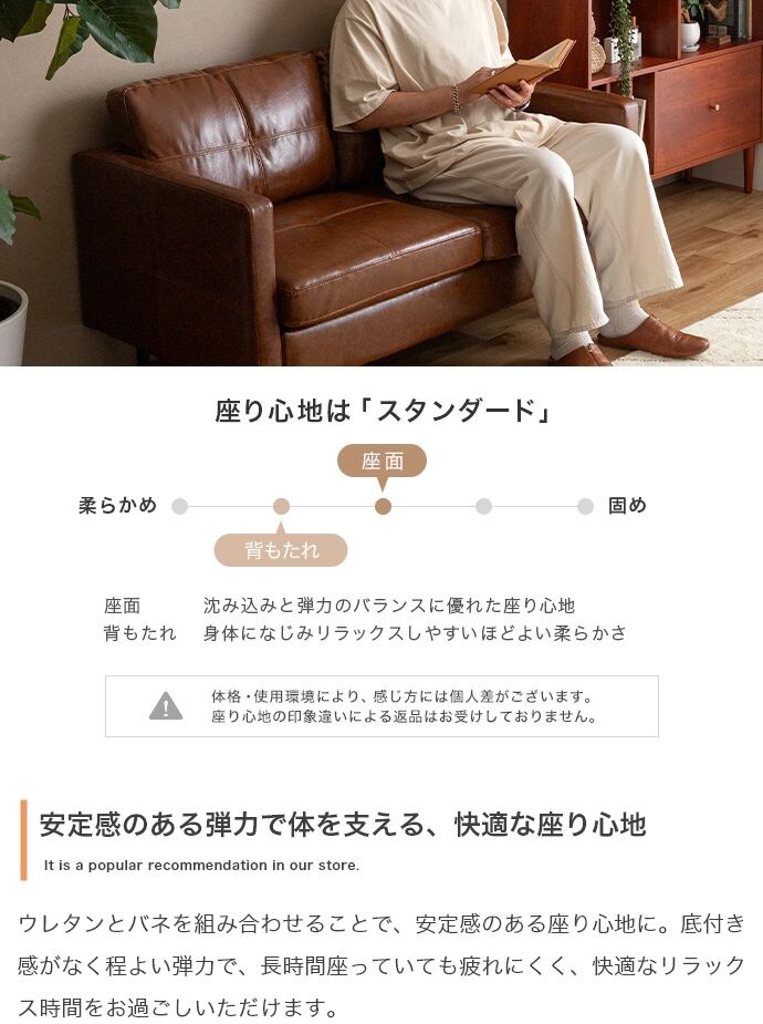ヴィンテージ感漂う濃いめのレザーが、空間に深みを与える『Carlos(カルロス)』2人掛けソファ。座面、背もたれには上質感を引き立てるクロスステッチを施し、見た目の洗練さとともに、程よく沈み込む心地よい座り心地を実現しました。張地にはPVCレザーを採用し、日々のお手入れも簡単にしていただけます。重厚感のあるデザインで存在感があり、インテリアにこだわりたい方の主役ソファとしておすすめです。
