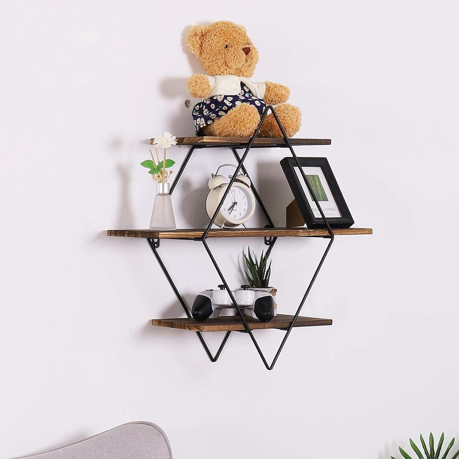 【おしゃれ部屋に大変身】パイン無垢材とブラックアイアンを組み合わせたウォールシェルフです。◇菱型のシックなデザインが、飾るだけでもオシャレな部屋に大変身します。