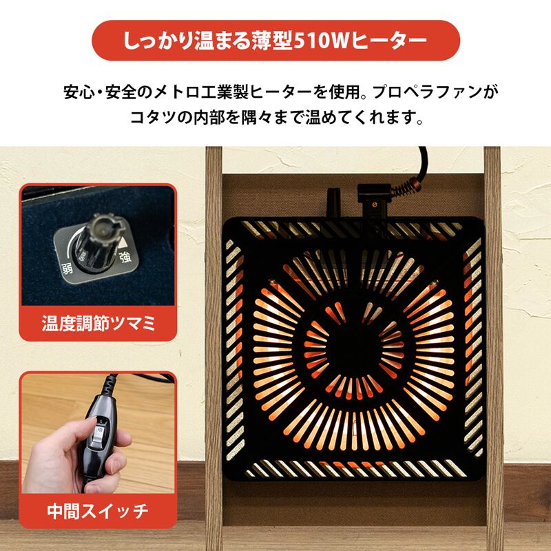 ヒーター:510W 石英管ヒーター、コード長さ:約3m(中間スイッチ付き)